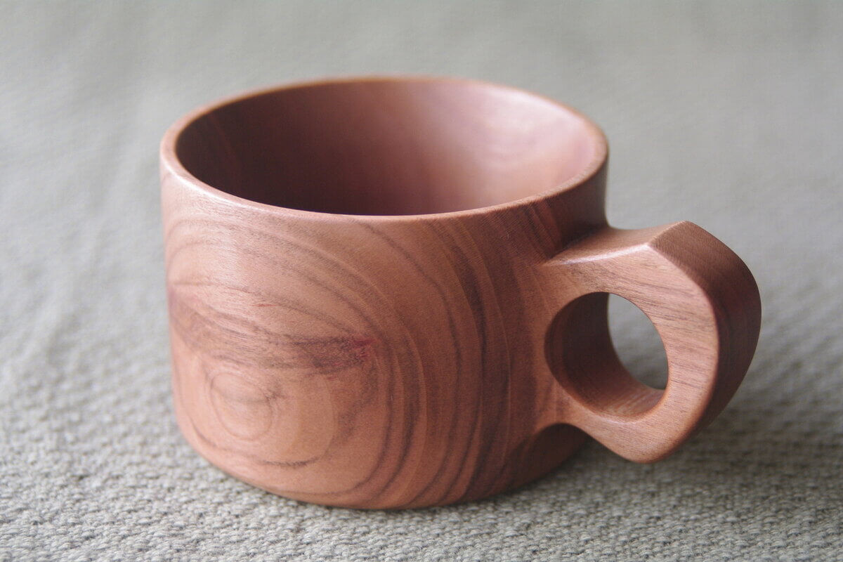 無垢の木から切りだして作られた木製のマグカップです。天然素材のため、肌触りがよく握った瞬間や口にあたった瞬間に気の優しさを感じられます。