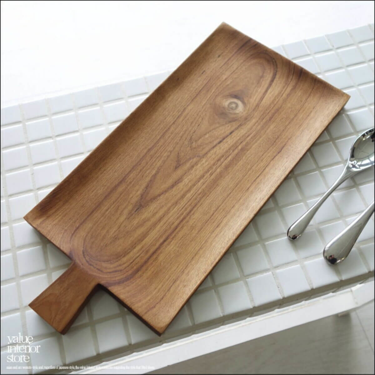 チーク材で製作された四角いディッシュランチプレート。世界三大銘木のひとつ「チーク」は、高級材としても有名。