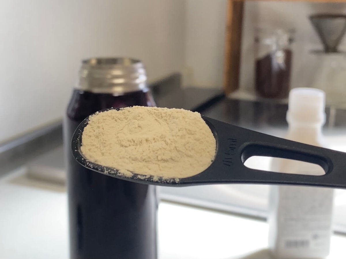 水筒の中にクリーナーを入れます。500mlに対して小さじ1程度なので、1回に使う量はかなり少なくすみます。