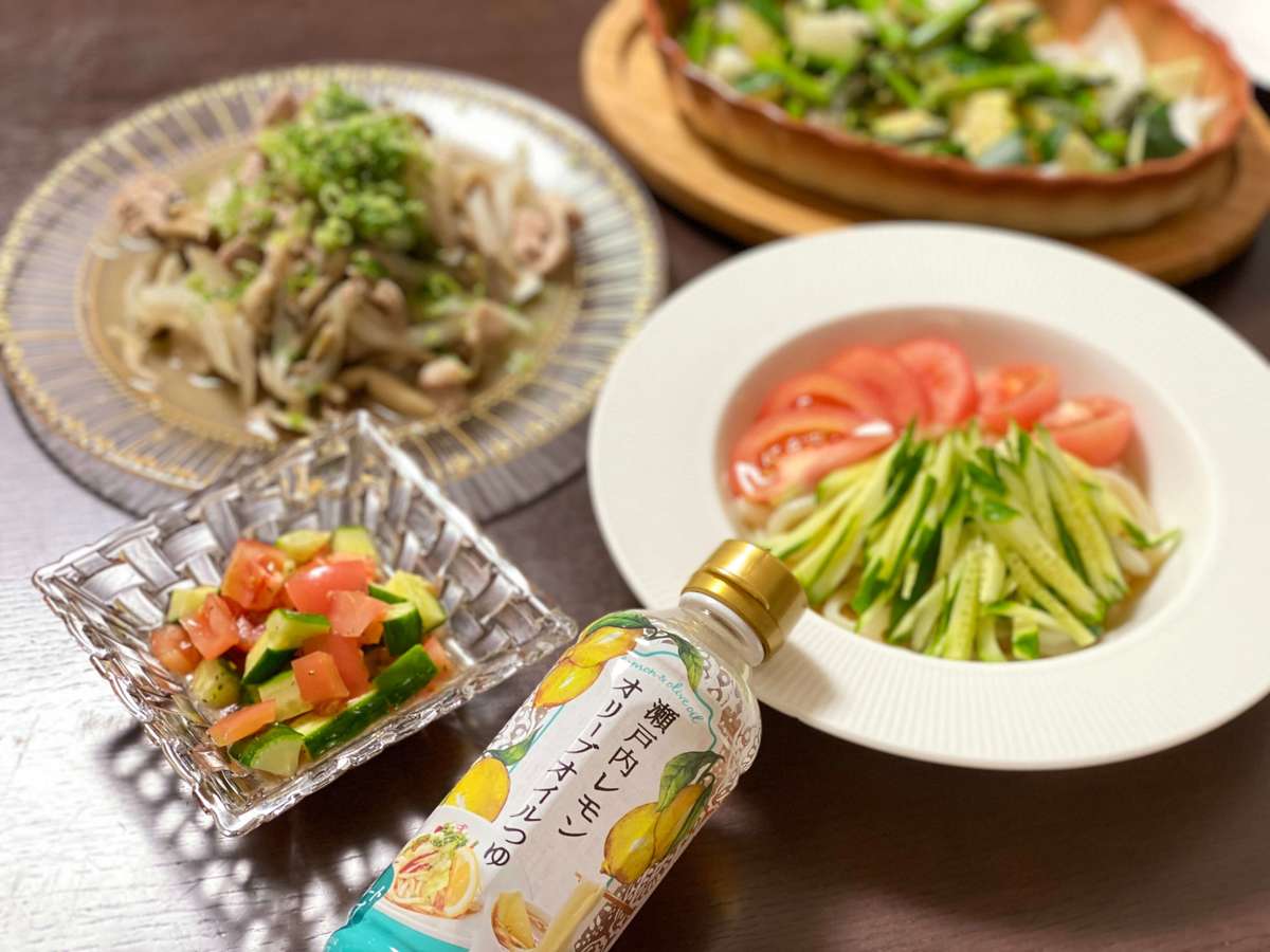 いつもの味付けを「瀬戸内レモンオリーブオイルつゆ」に変えるだけで、食欲のない夏場も食べやすい、爽やかなアレンジができます。