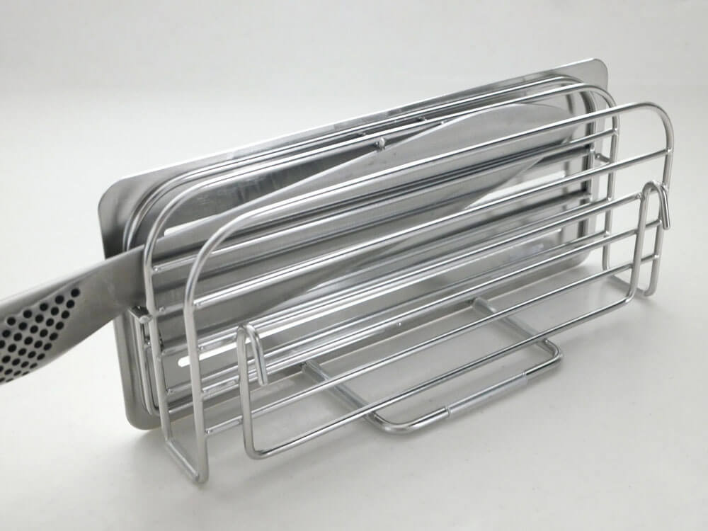 キッチンツールは長く使え、衛生的であることが重要。 「包丁&まな板スタンド」はステンレススチールなので、錆に強く毎回包丁&まな板を収納するたびに水気を拭き取らなくても大丈夫。