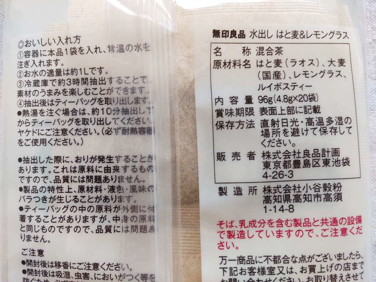 はと麦をベースに、大麦、レモングラス、ルイボスティーがブレンドされています。