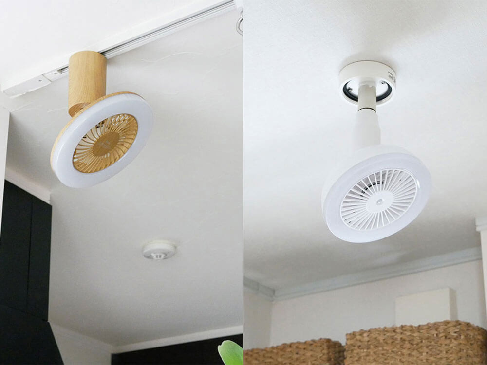 次は、天井に取付でき、コンパクトな風と明かりを作ってくれる2台をご紹介します。