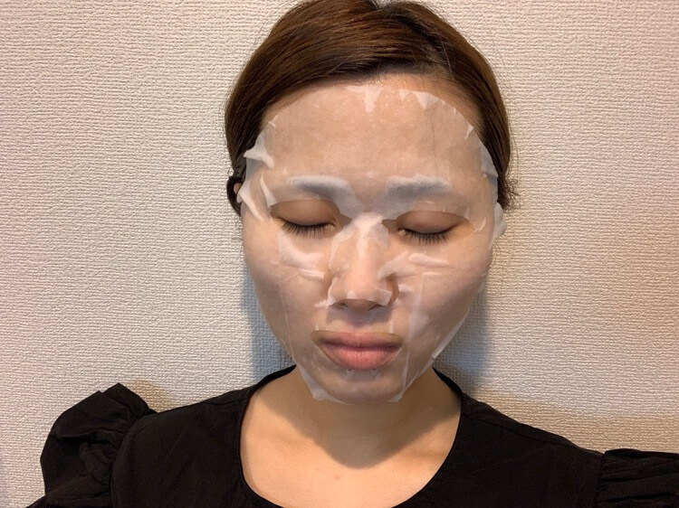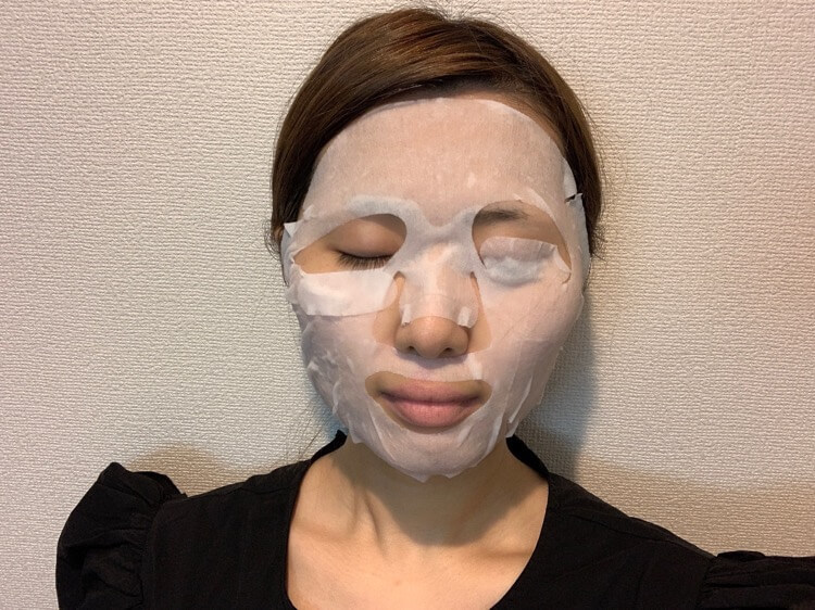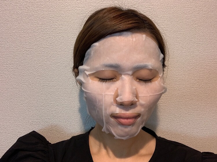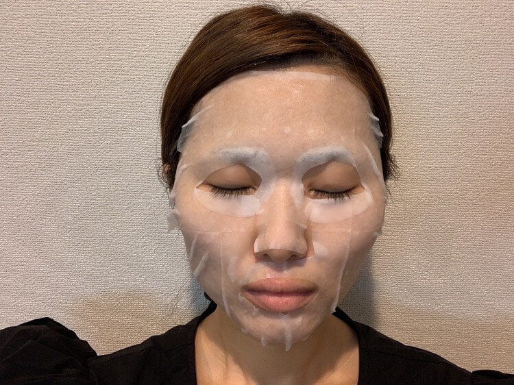 ただ、アイゾーンのくりぬきがとにかく大きい。目元が乾燥しないか気になりました。目の周りをしっかり保湿したい場合は、まぶたを閉じてパック部分をのせるといいかもしれません。