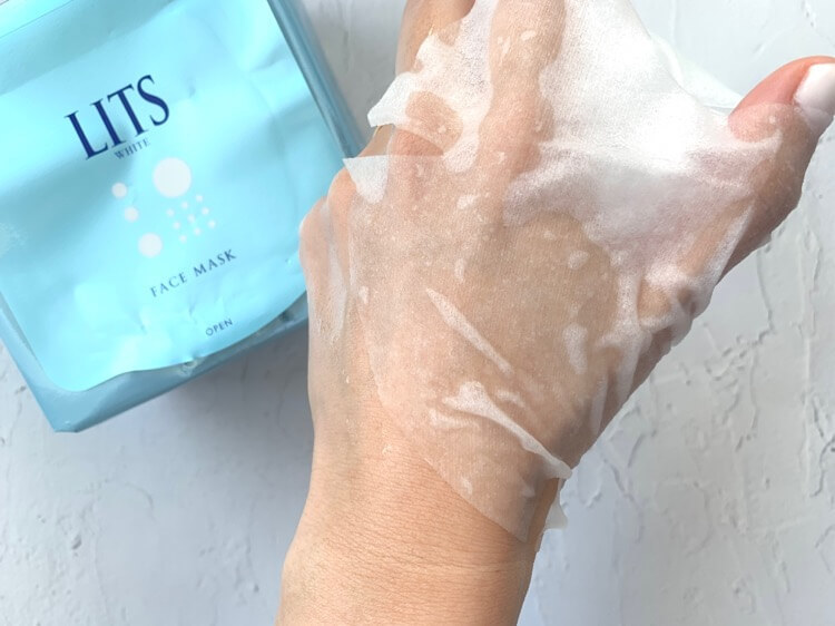 シートの生地は、コットン100%。厚みは感じませんが密着感はあります。なめらかさがあるので肌にチクチク感もナシ。美容液をしっかりと含んでいて乾きにくく、マスクを外した後も保湿力がつづきます。