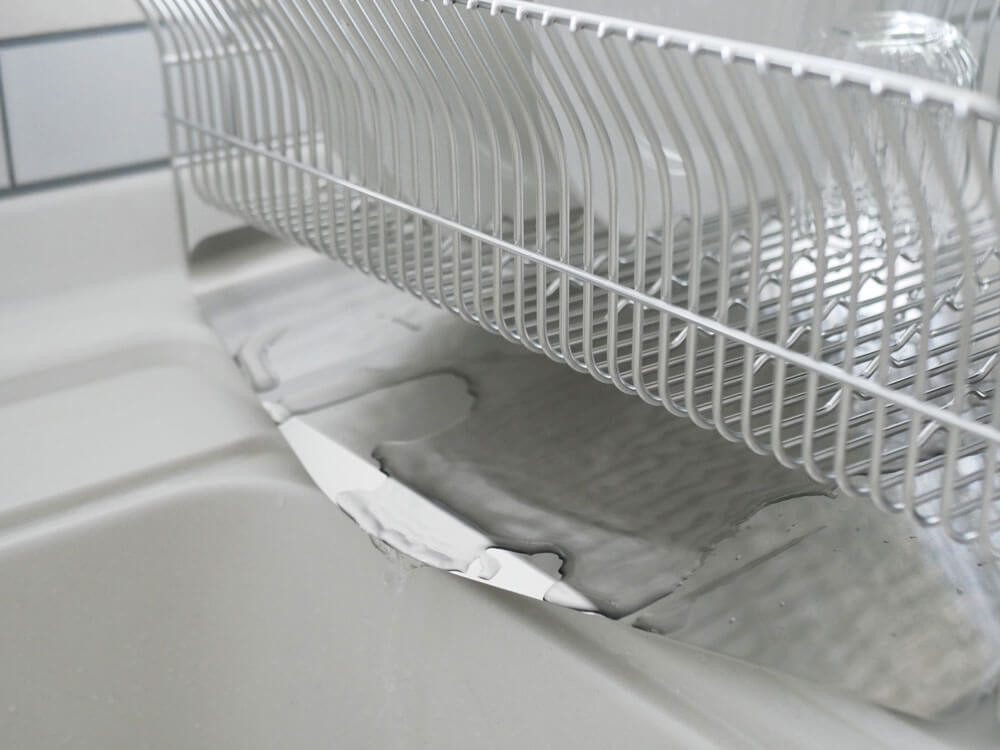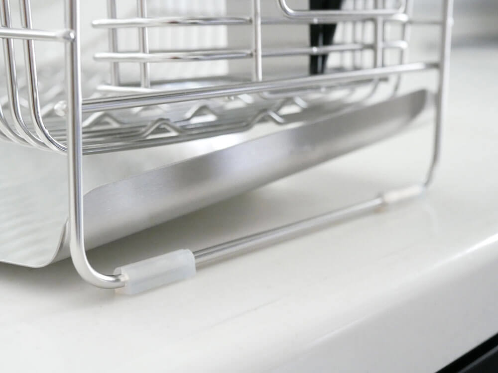 トレーには傾斜がついているので、洗い物から落ちた水分をトレーが受け止め、シンクにスルスルと流してくれます。