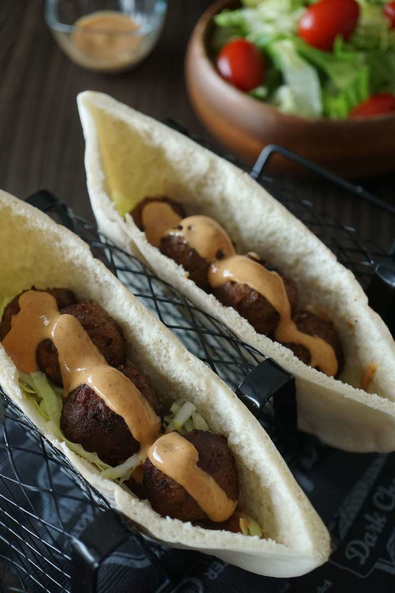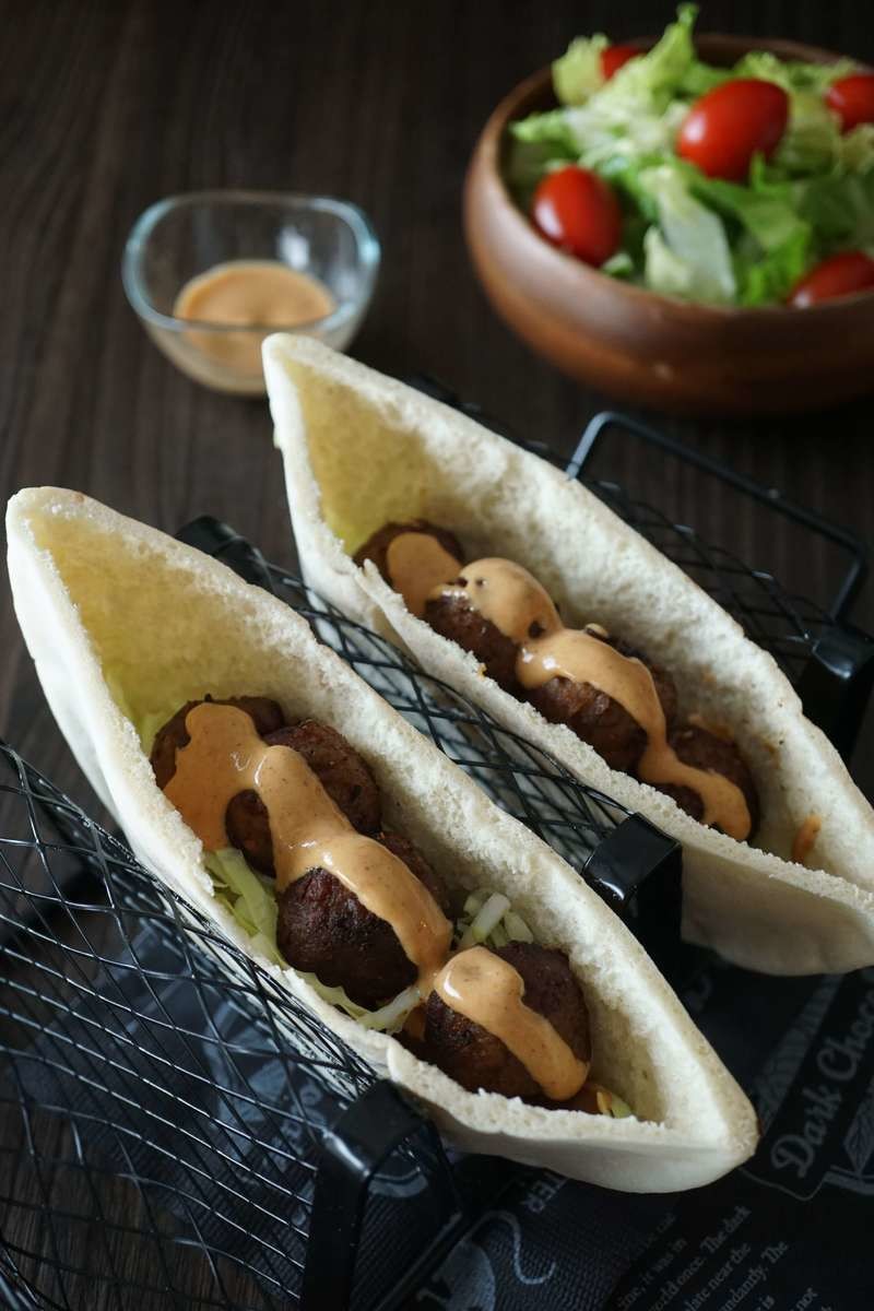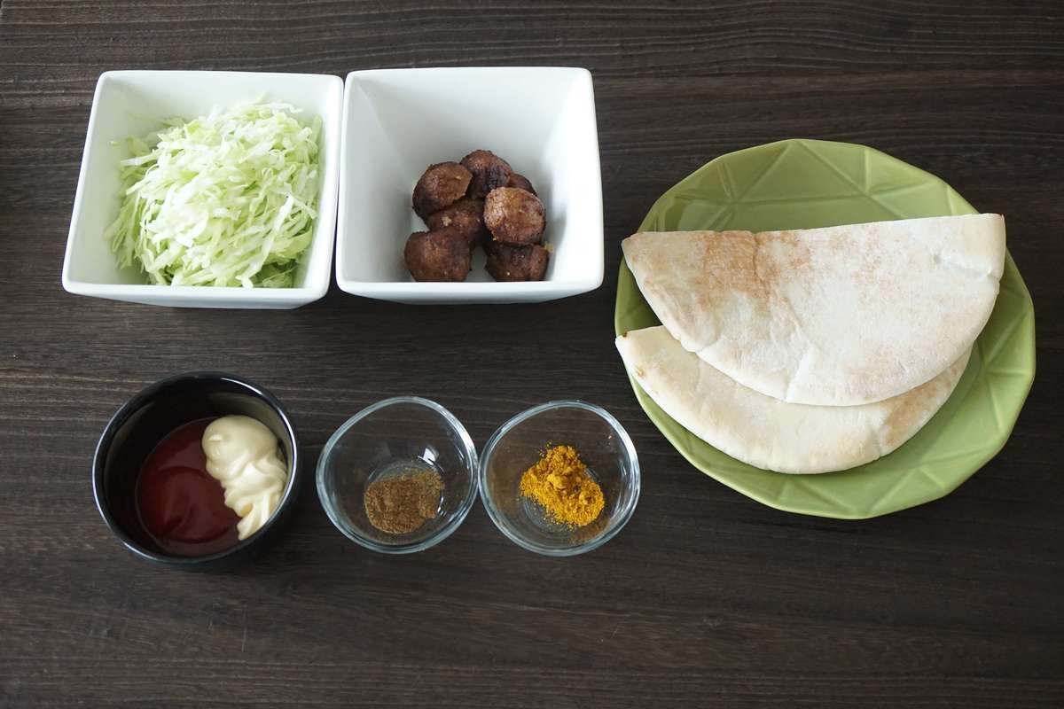 スパイスがきいたプラントボールはケバブを彷彿させる味だったので、「ケバブ風ピタサンド」を作ってみました。