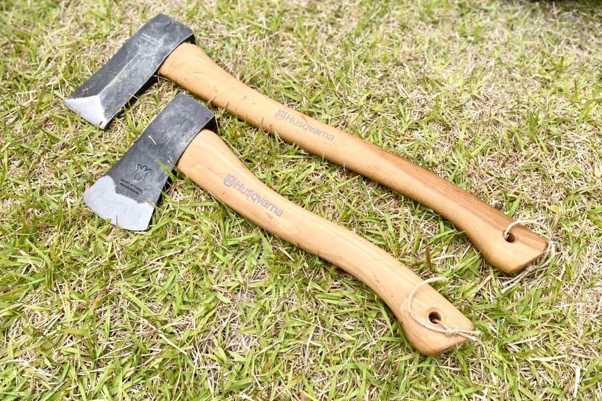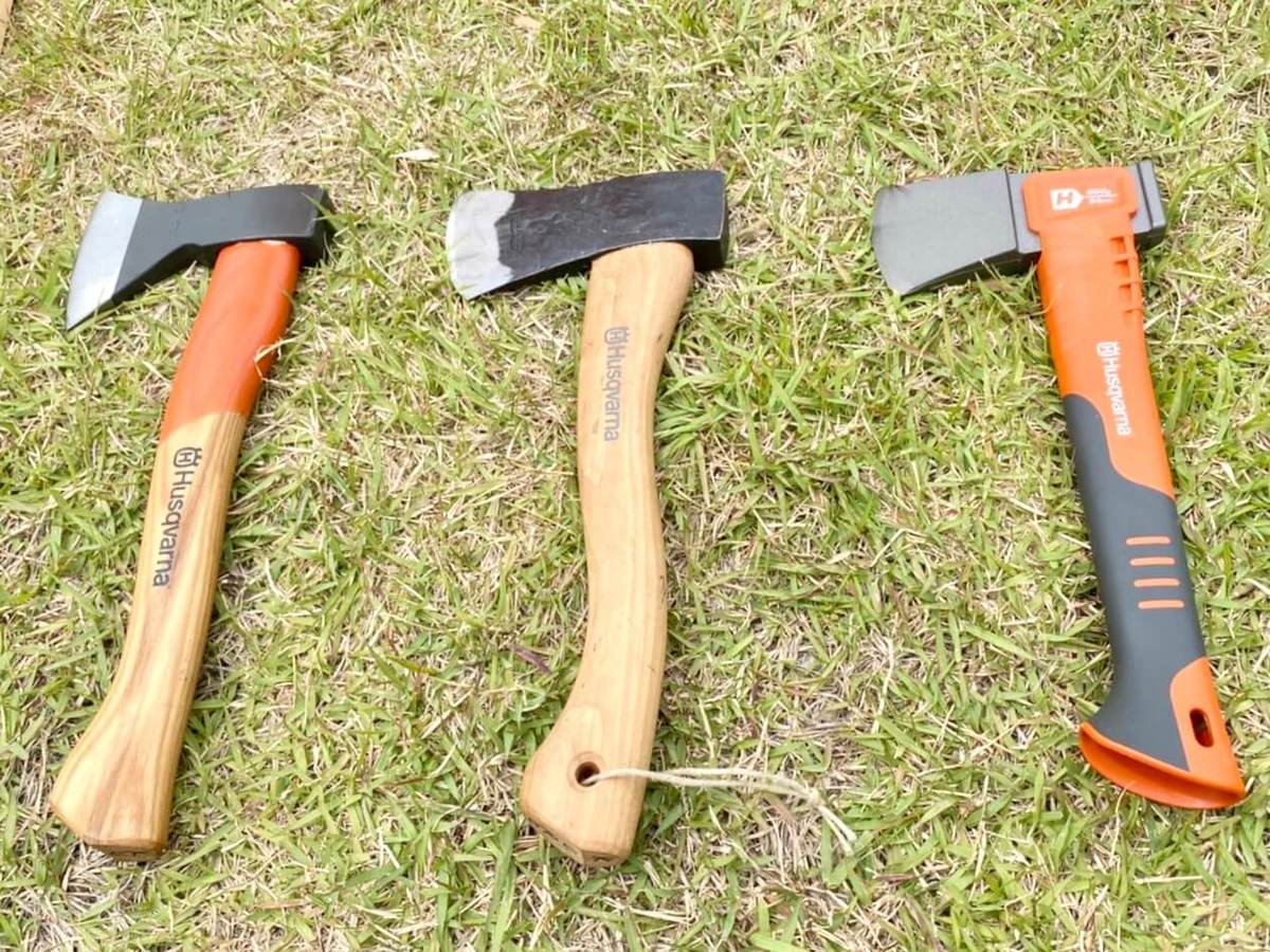 使いやすいと感じる斧やマサカリは、人それぞれ。すべて触ってみましたが、私には真ん中の斧が手に合うように思えたのでそれを主に使いました。