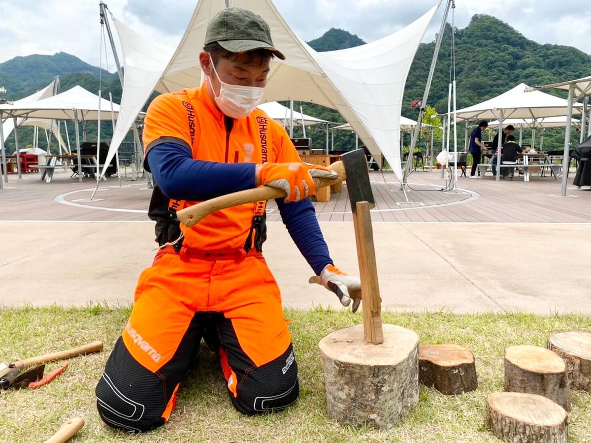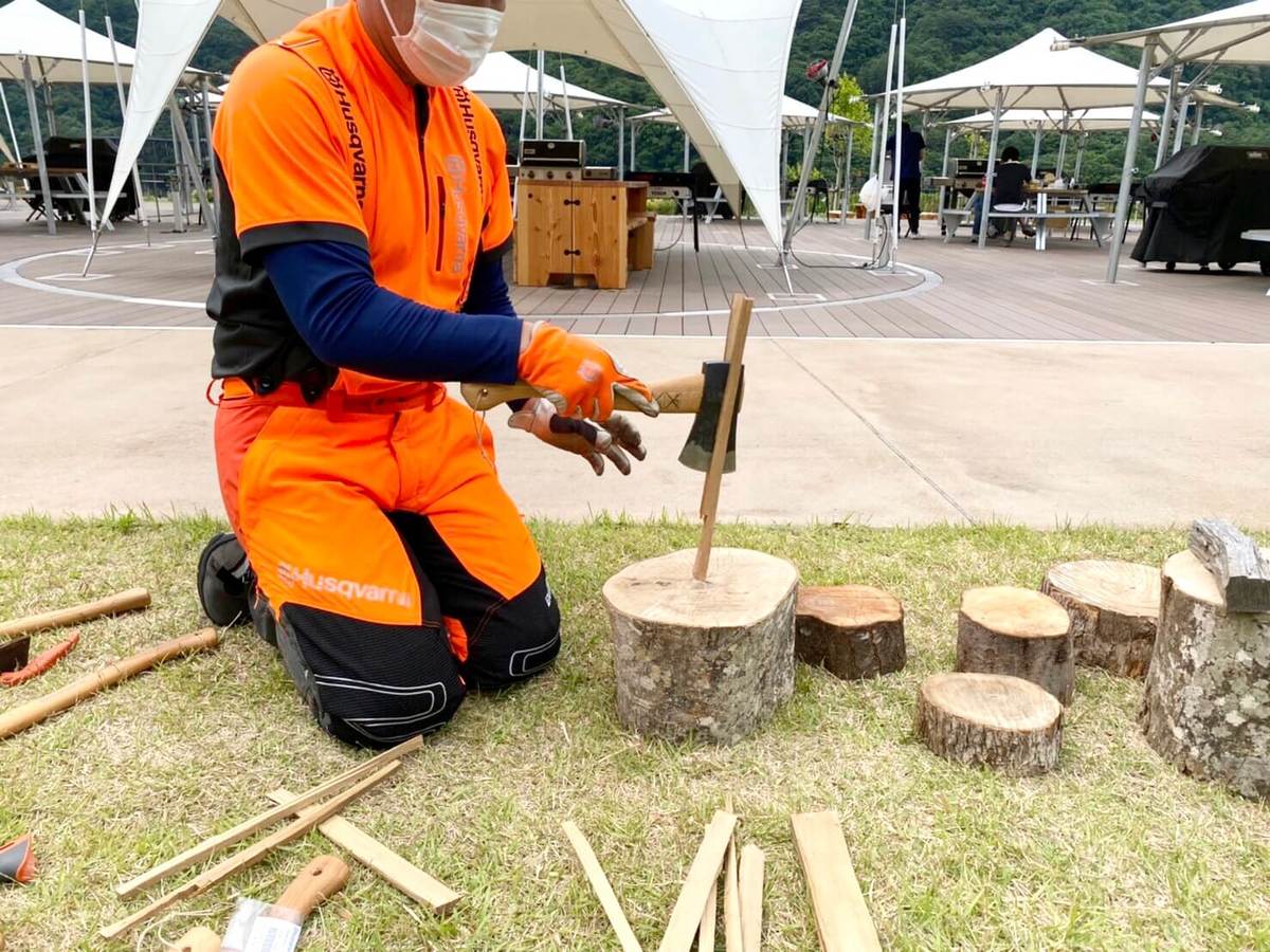 今回、特別にハスクバーナの黒澤さんに薪割りを教えていただきました!