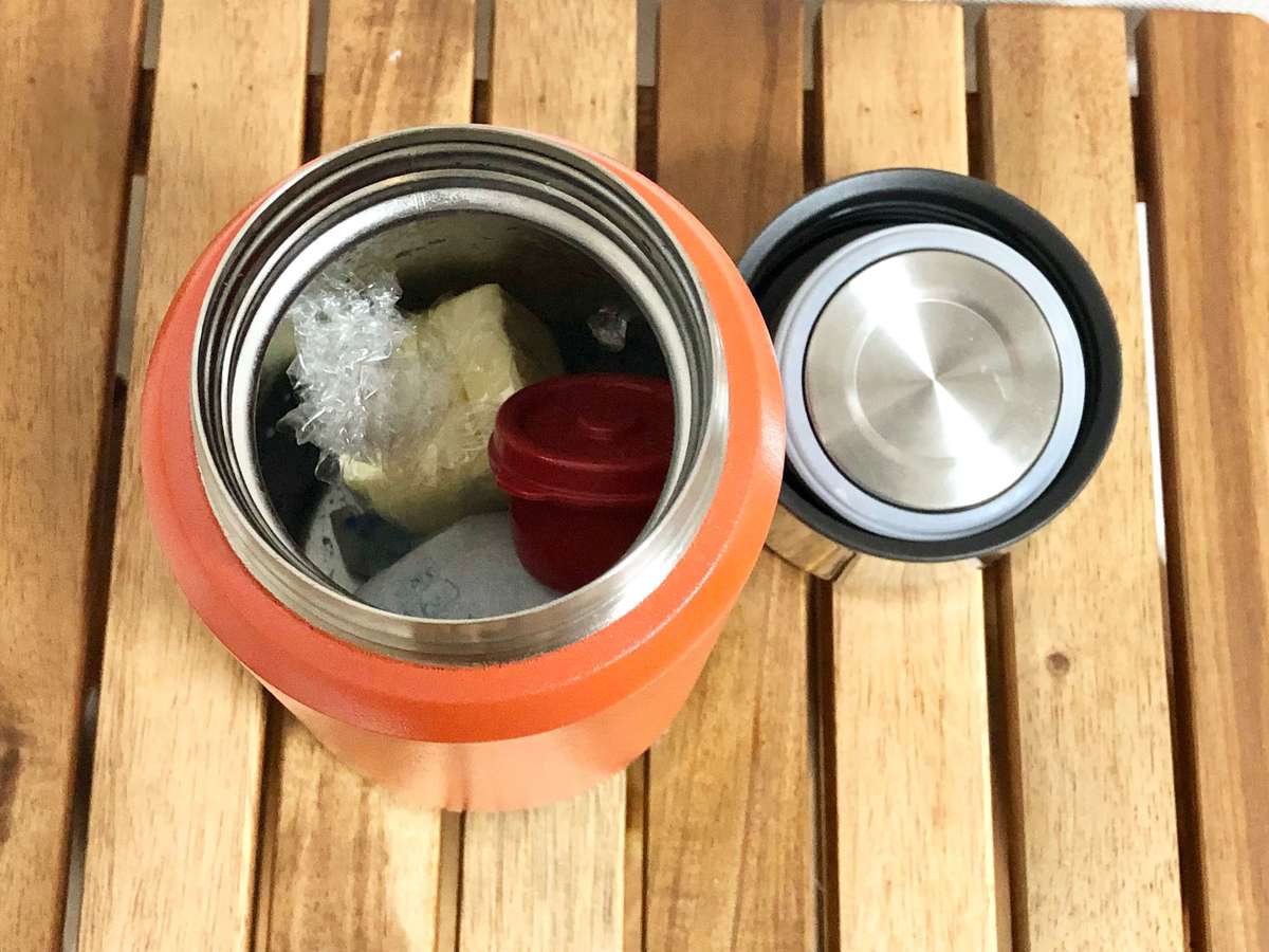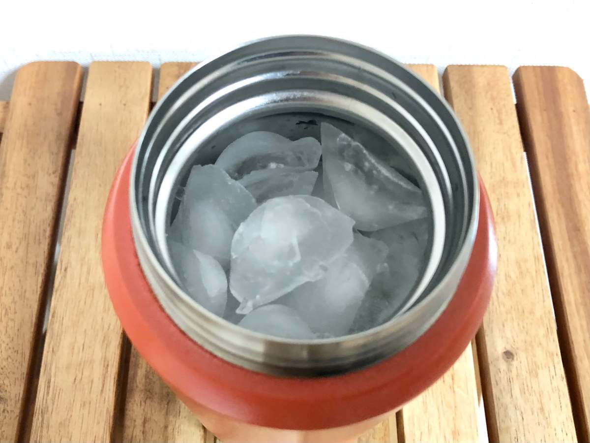 そこで、フード缶をうまく使うのがおすすめです。 炎天下の作業中でも、冷たい飲み物を飲むと疲労が回復します。飲み物だけ別で買って、ぬるくなったらフードカンの中の氷の出番です。