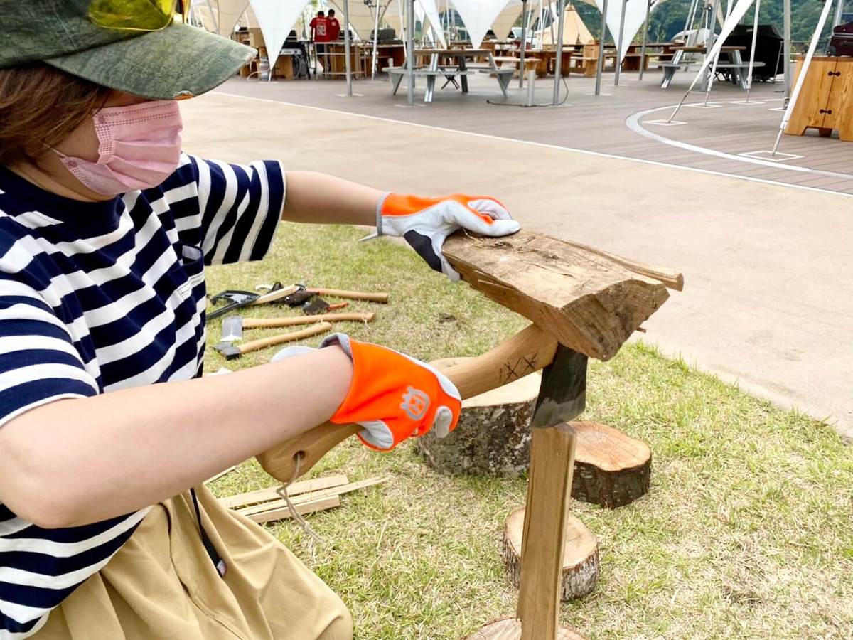 キャンプに欠かせない「たき火」。おしゃれ「斧」で薪割り初体験!