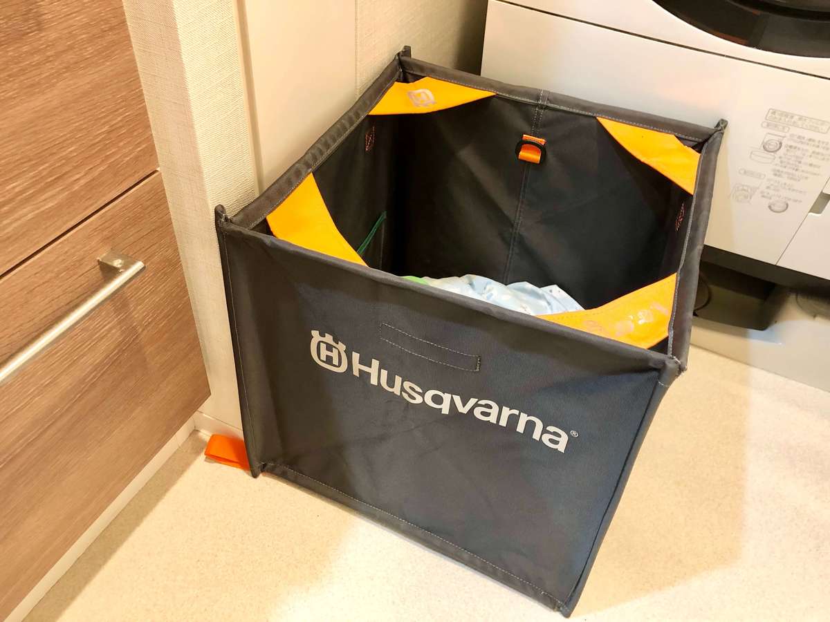 ハスクバーナのデザインがかっこいいので、ぽいぽい放り込んでもかっこつくのがいいですよね。使わないときはたたんで、タンスの隙間など狭いところに収納可能。