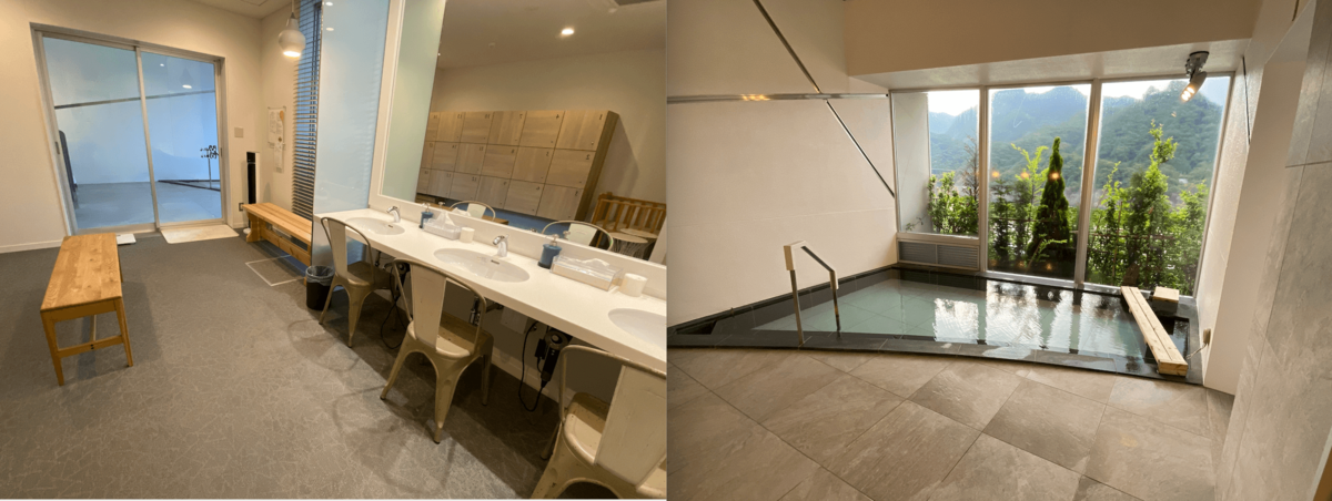 隣接する屋内施設には「笹湯カフェ」、温浴施設「笹湯」もあり、子連れ家族のアウトドア初心者にも楽しめるポイントがいっぱい!「笹湯」は、脱衣所もきれいです。お風呂があると、汗をかくバーベキューや夏のキャンプを気持ちよく過ごせていいですよね。