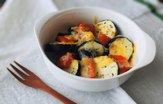 ①なすとパプリカのチーズオーブン焼き