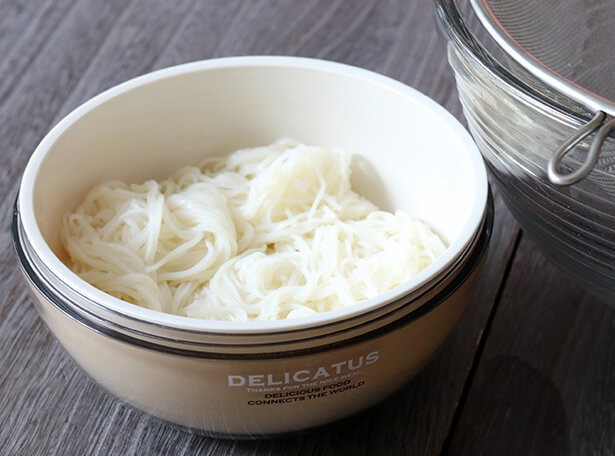 冷やし麺をお弁当にするには、専用のランチボウルを使うのが便利。