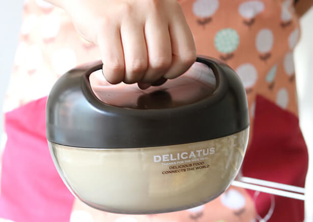 スクリュー式のハンドル蓋は密閉性が高いので、汁物もこぼれる心配がありません。