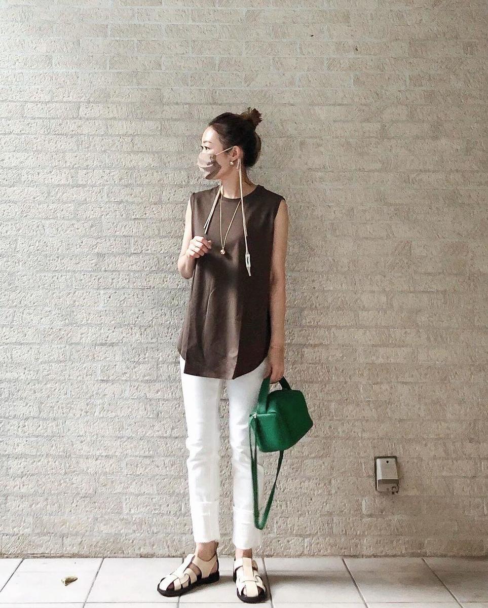 半袖や長袖だけでなく、ノースリーブのインナーとしてもおしゃれに着こなせます。 ユニクロなら「ユニクロアンドマメクロゴウチ」の『エアリズムコットンオーバーサイズT(ノースリーブ)』とのレイヤードもおすすめです。