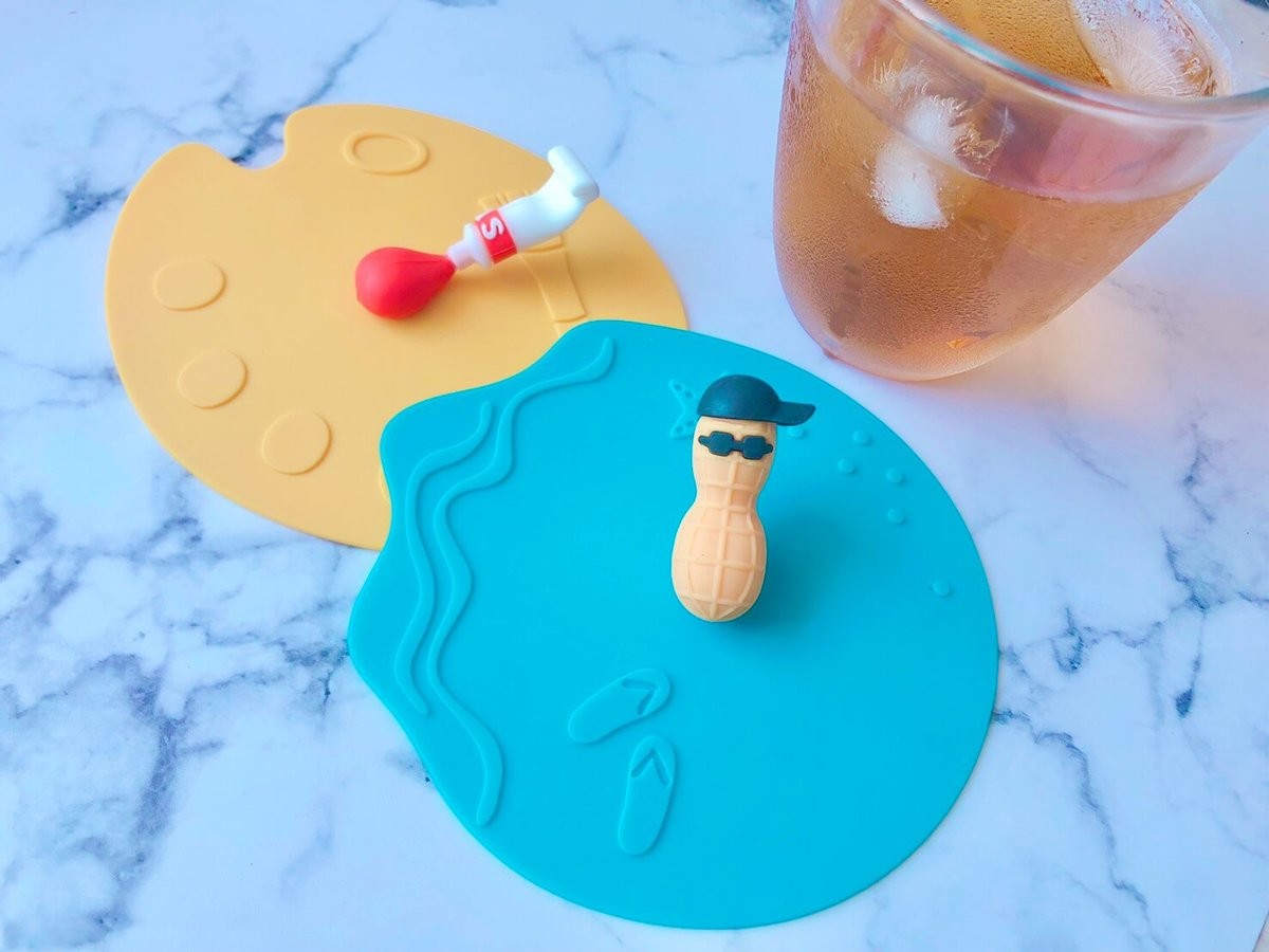 また、コップの上に置いて真ん中のキャラを軽く押すと、コップにしっかり吸着するんです。