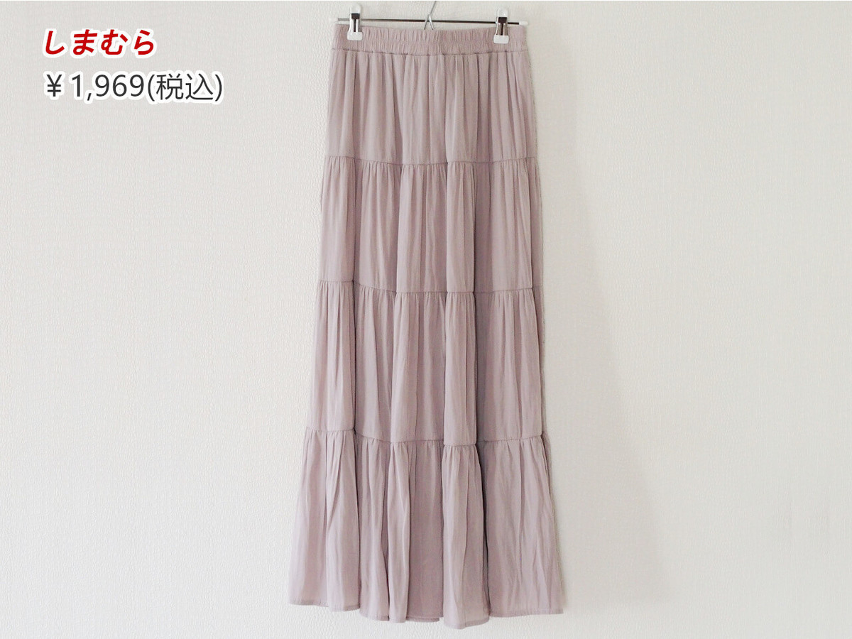 生地を段々に切り替えたティアードデザインのロングスカート。