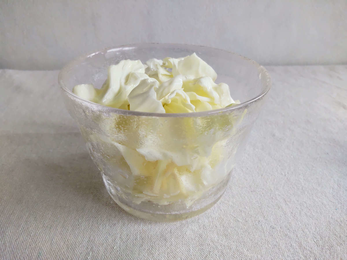 キャベツの水分が抜けて蓋が下がっています。