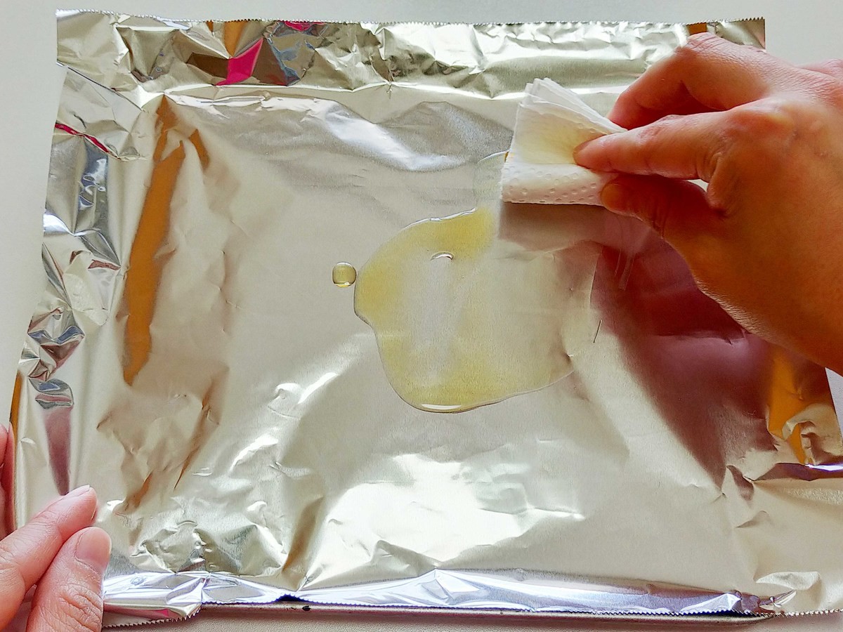 - ②アルミホイルに「ごま油」をうすく塗る