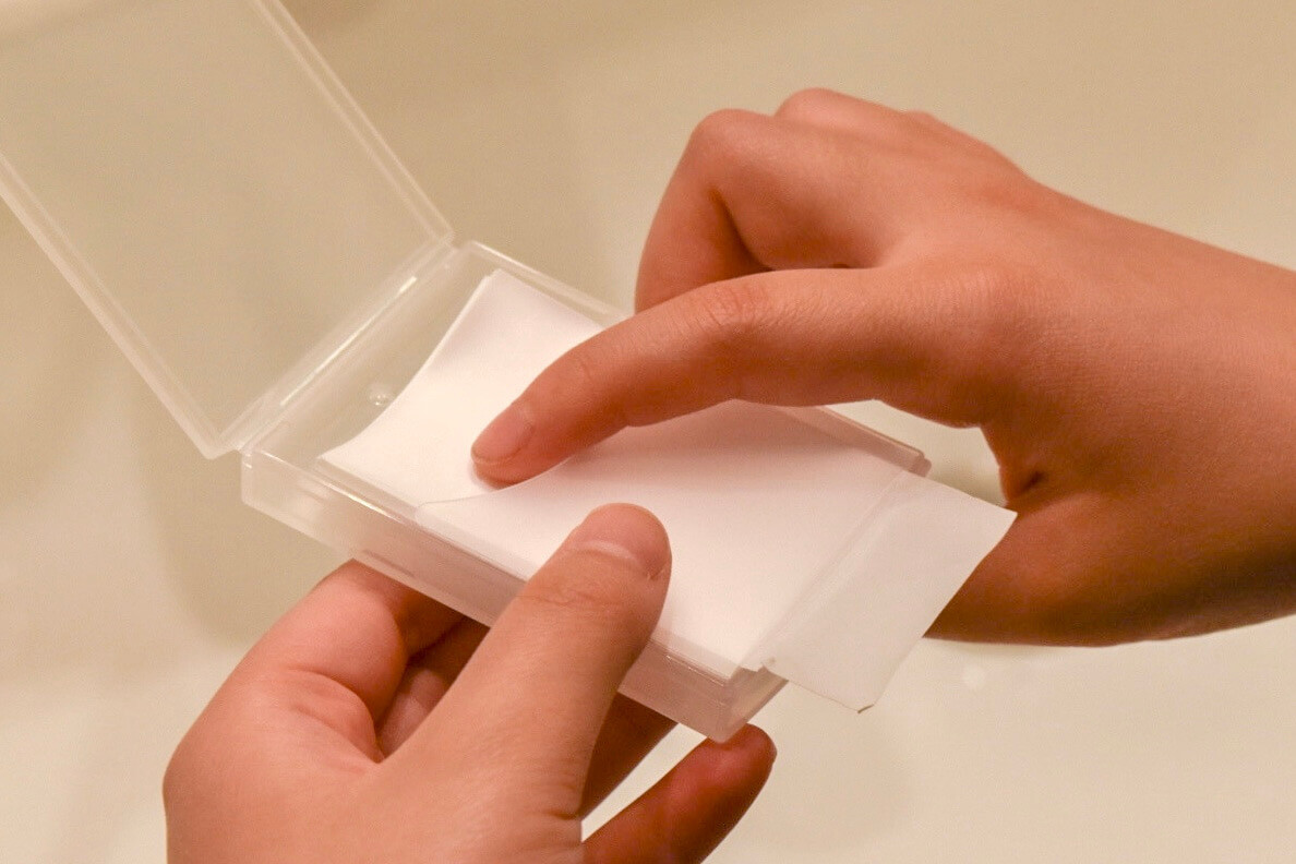フィルム状の石鹸はベタつきがなくサラッとしています。