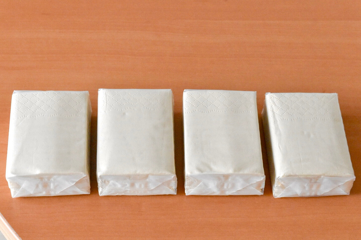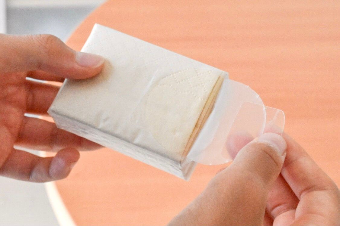 パッケージを開けるとペーパーナプキンが4つ入っていて、税込80円。