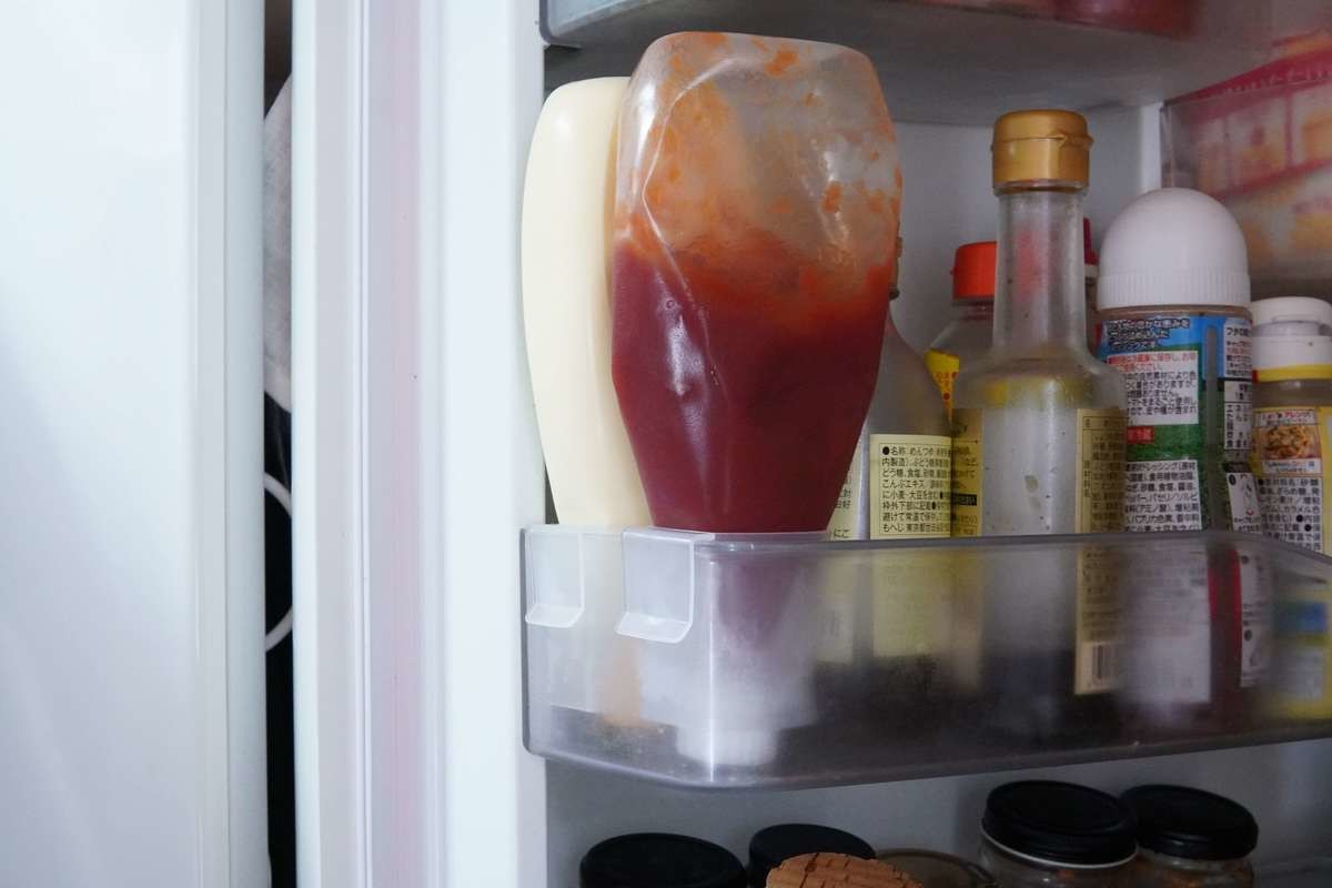 マヨネーズやケチャップは、量が減ってくるとくたっと曲がって倒れてしまい、収納しにくくて困っていました。