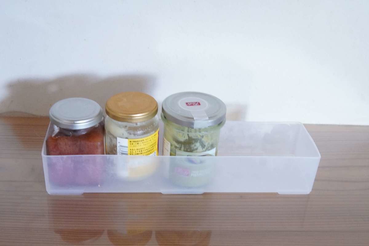 冷蔵庫の上段の棚に収納ケースを使わずに、瓶の調味料を収納してしまうと、出し入れしにくくイライラしてしまいます。