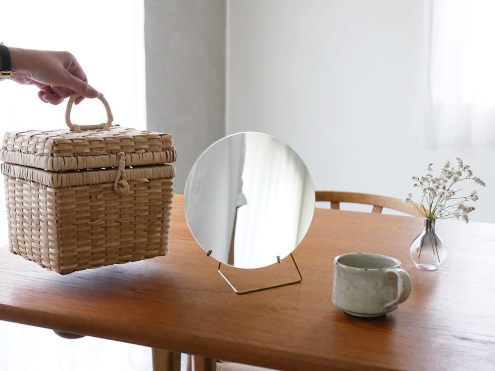 軽くて持ち運びしやすい直径20cmのミラーは、メイク時に自然光の当たる場所への移動も楽ちん。 軽食を取りながらダイニングテーブル、陽の当たる窓際、テレビを見ながらリビングテーブルなど今日の気分に合わせたメイク時間を作ってくれますよ。