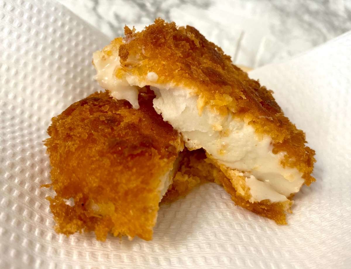 凍った状態のまま、170~180度の油で5分程度揚げるだけでOK。ちょっと強めに掴んでしまうと、中のクリームが出てきてしまうので、注意して調理してくださいね。