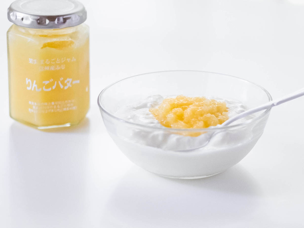 ヨーグルトとりんごバターをよく混ぜると、さわやかな甘さでとてもおいしい!糖度が高くしっかりとした果実感があるので、ヨーグルトとの相性も抜群。満足度はかなり高めです。