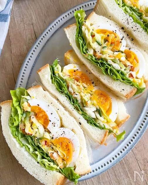 ⑩野菜たっぷりコールスローサラダとゆで卵のサンドイッチ