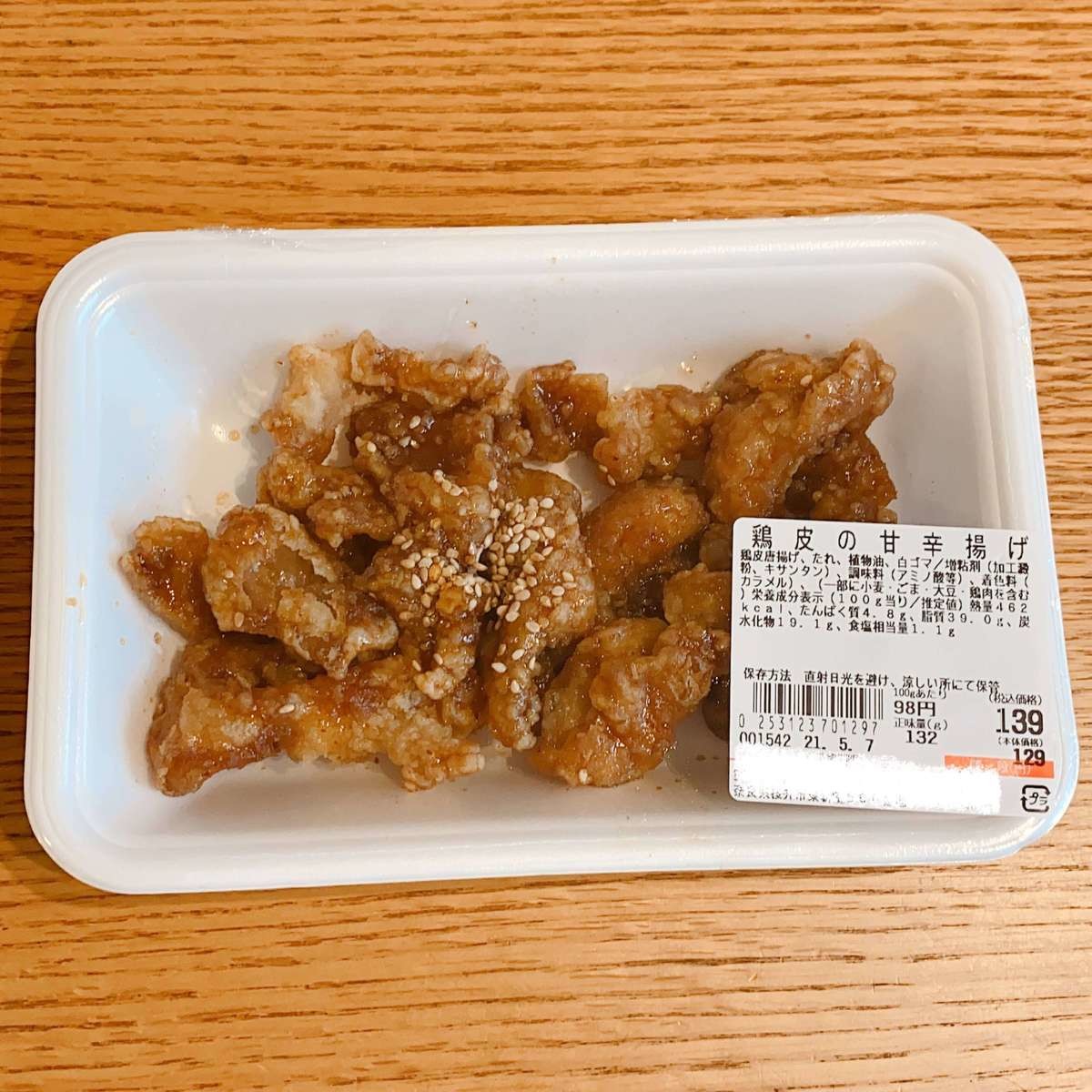 カリカリ美味しい!鶏皮の甘辛揚げ100gあたり98円