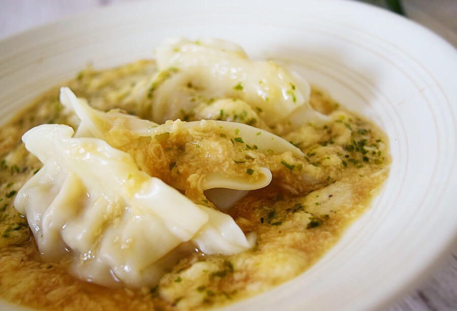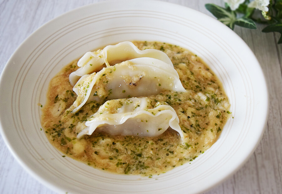 - ゆで上がった餃子を氷水で冷やして器に盛り付け、2.をかけたら完成