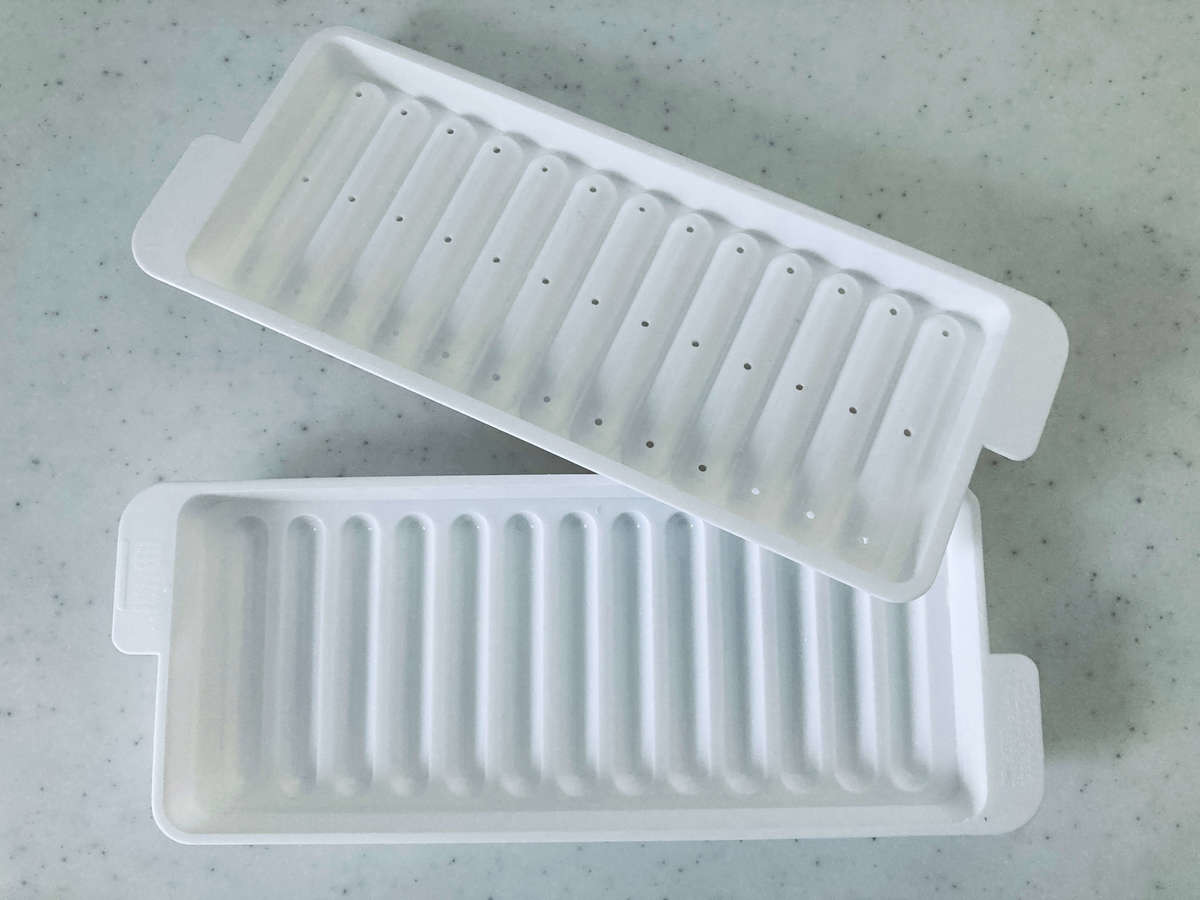 使用前は食器用洗剤できれいに洗い、水気を拭き取ってから冷凍庫に入れてくださいね。キューブどうしの間隔を開けるとより使いやすいですよ。一つ一つが小さめなので、冷凍庫に入れる時間は半日くらいでOKでした。