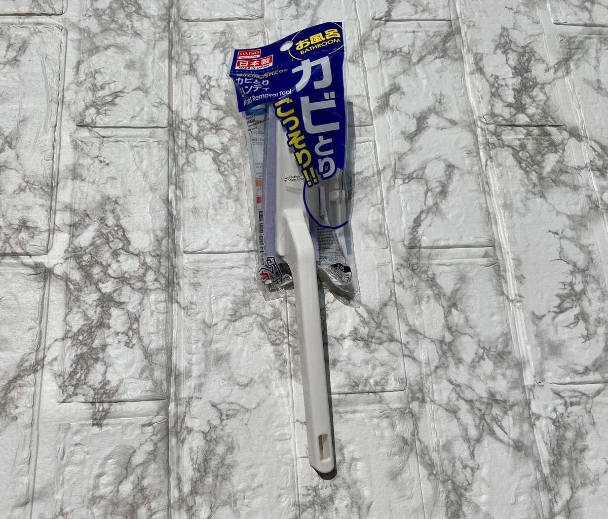 こちらも、ダイソーで販売されている「カビとりハンディ」。研磨粒子を配合した不織布がハンディの先端に付いていて、水だけで汚れやカビを落とせるんです。