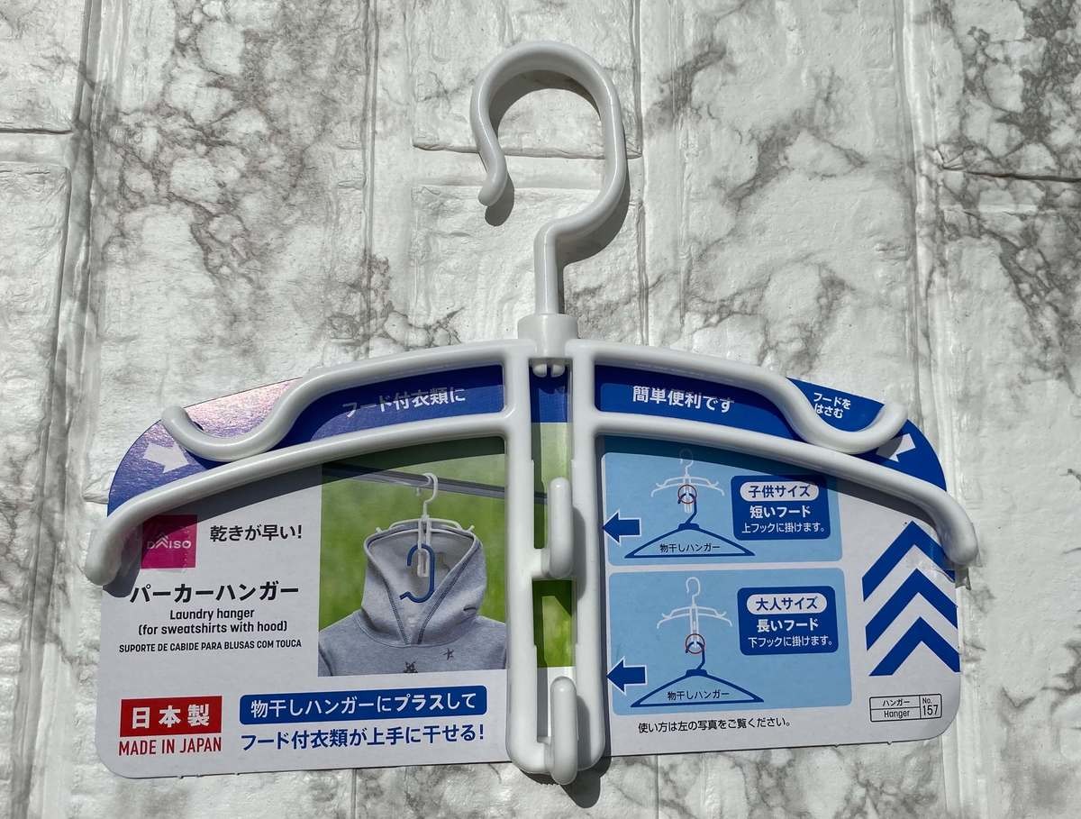 物干しハンガーに取り付けて、フード部分の風通しをよくし、乾きやすい状態をキープできます。フックが2段付いているので、子どもサイズから大人サイズの洋服まで幅広い大きさに使用可能!