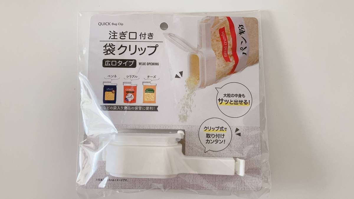 こちらはセリアの「注ぎ口付き袋クリップ 広口タイプ」です。