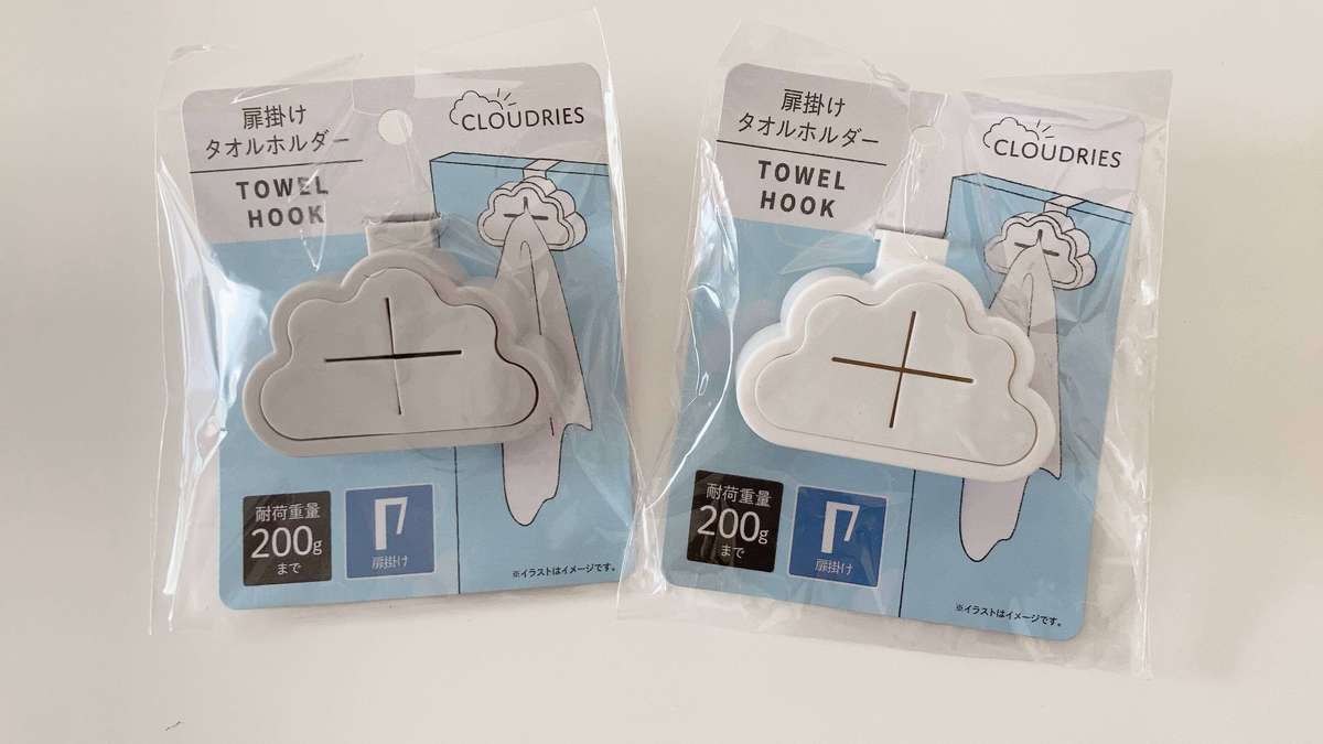 この可愛い雲形の物。こちらは「扉掛けタオルホルダー」という商品です。