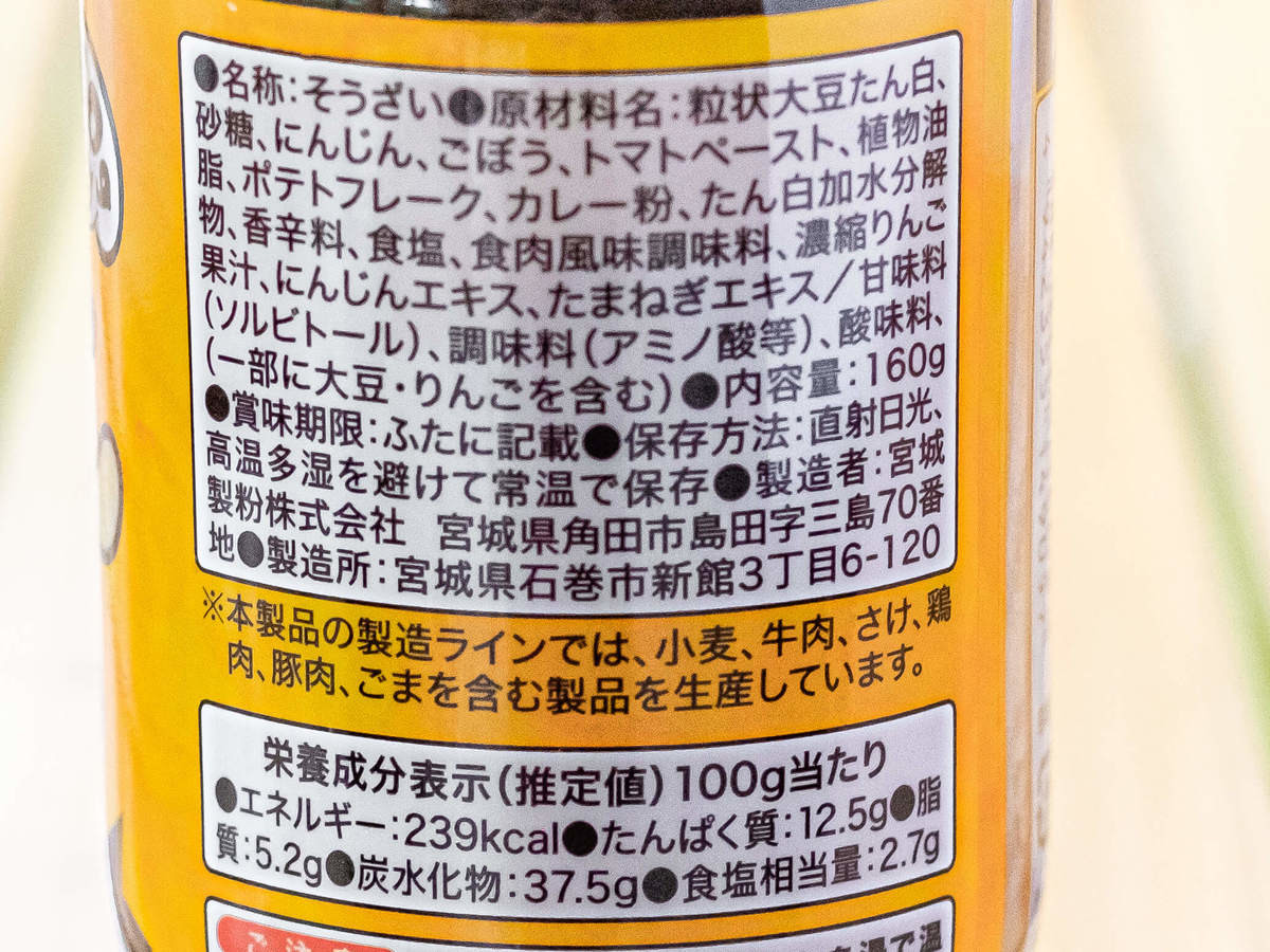 業務スーパーの「畑のお肉のカレーそぼろ」は1瓶に160gと、しっかりとした量が入って138円(税込)