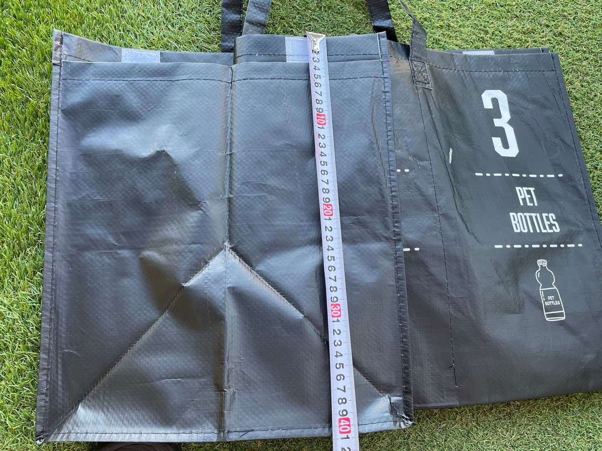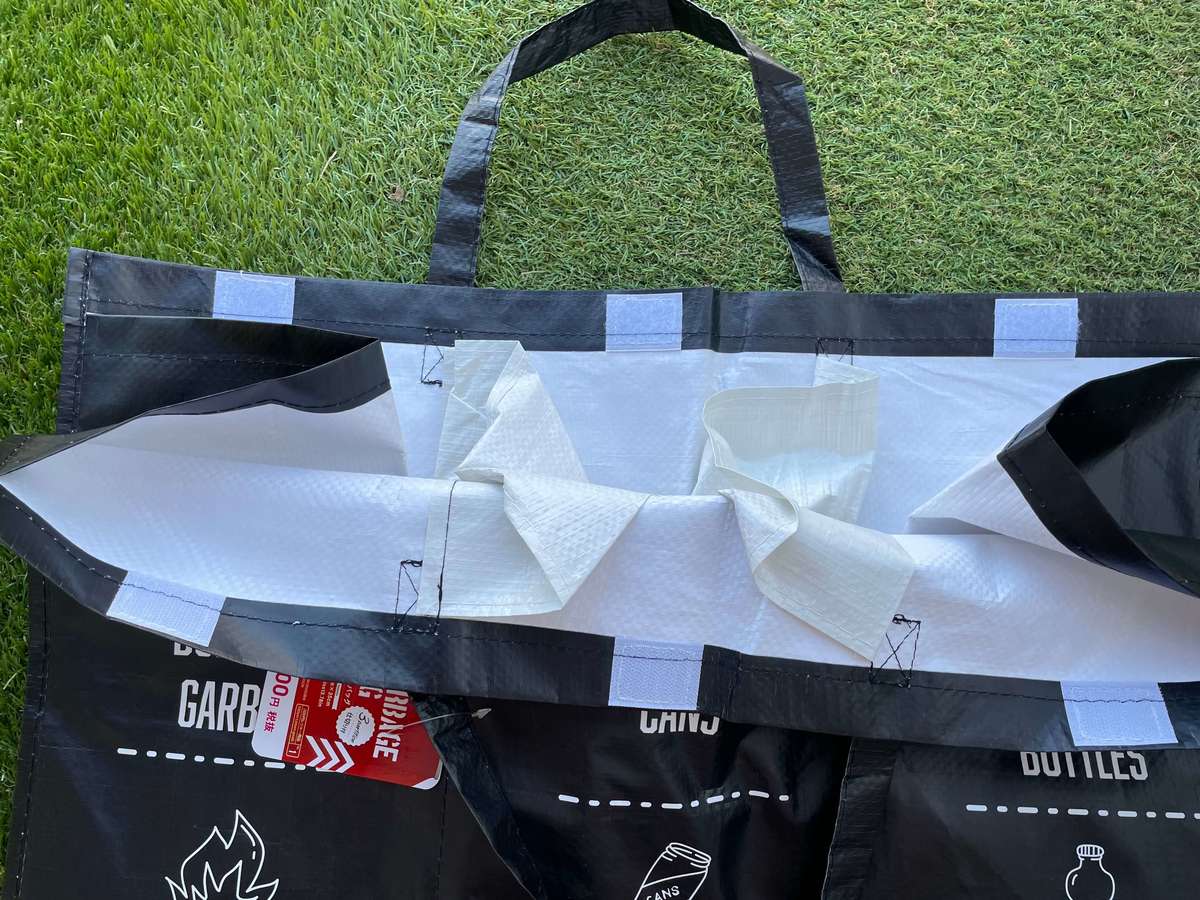 少しの隙間なので缶やペットボトルが移動することはありませんでしたが、ペットボトルなどから水分が出てしまった時の衛生面や、ゴミをバッグから取り出す時の労力を考慮してゴミ袋を入れて使用するとバッグの内側も、綺麗な状態を保ちながら使用できると思いました。