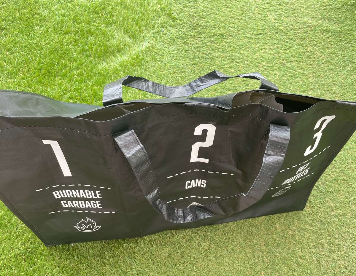 バッグの表側には1〜3まで燃えるゴミ、缶、ペットボトルのイラストがついています。