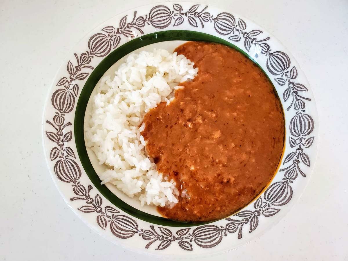 鶏肉を使ったキーマカレーです。生姜や昆布、かつおだしといった和食材がベースになっていて、山椒の香りがしっかりきいています。