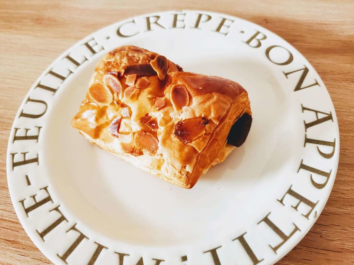 デニッシュ生地にチョコレートが包まれています。生地はフワッとしていて、トッピングのアーモンドもいいアクセントに。軽くトースターで温めても美味しいですよ。