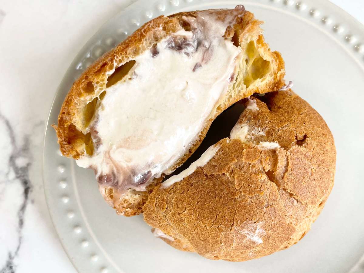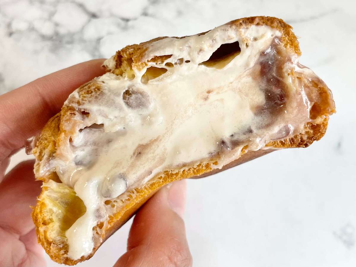 黒蜜ホイップがとろとろで柔らかいので、シュークリームを持つときは注意が必要です。