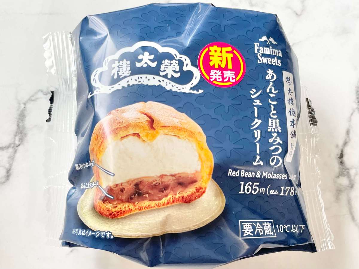 ファミリーマートで買える榮太樓總本鋪監修の「あんこと黒みつのシュークリーム」をご紹介しました。