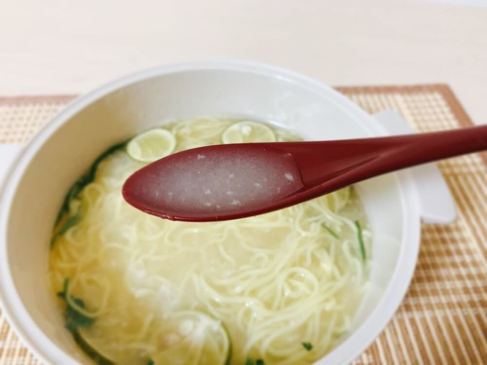 封を切っただけでシークヮーサーの香り広がるスープ