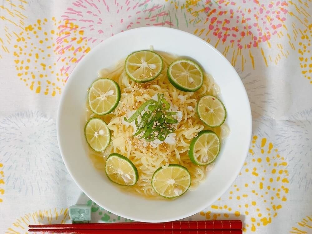 パッケージに作り方は載っていなかったものの、シークヮーサーといえばやっぱり冷やしたほうがいいでしょ!と、2回目は冷やしラーメンにして食べてみました。