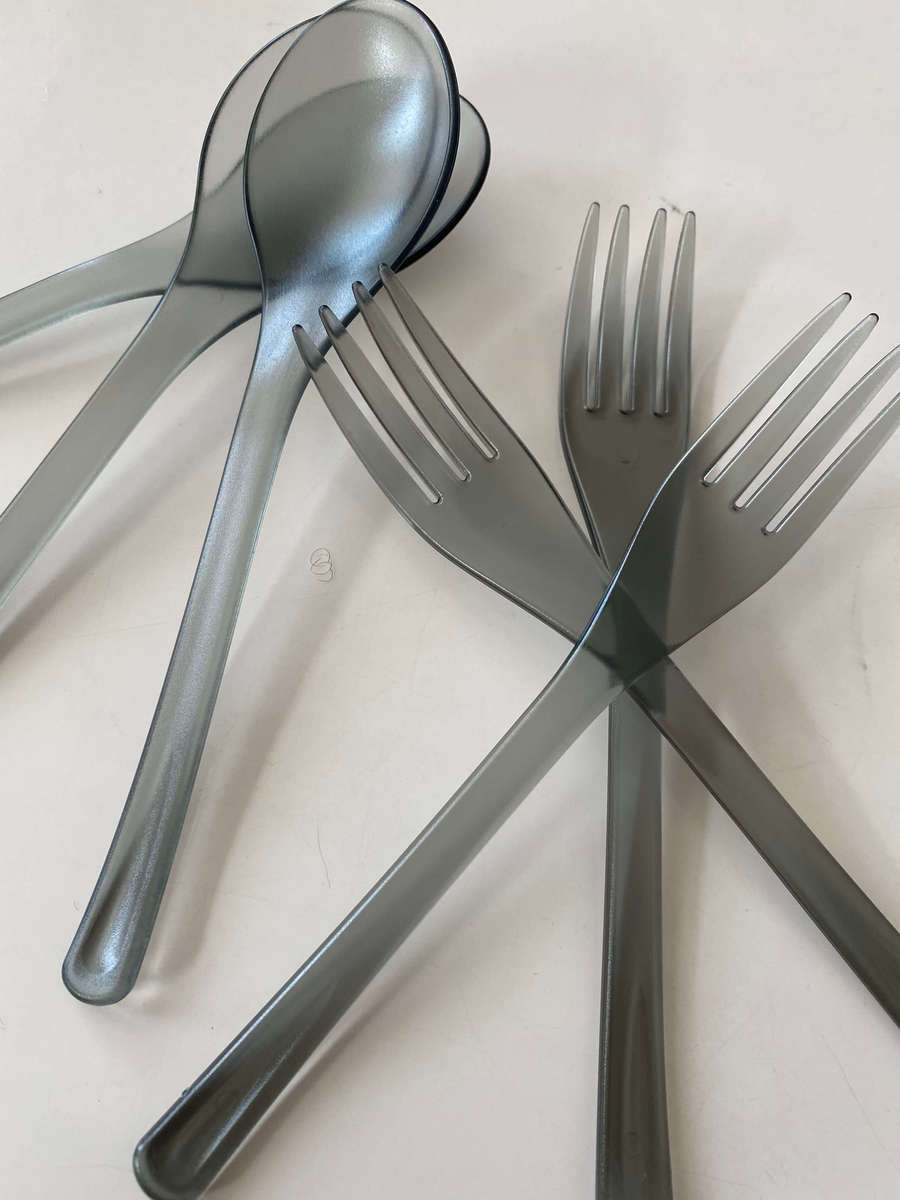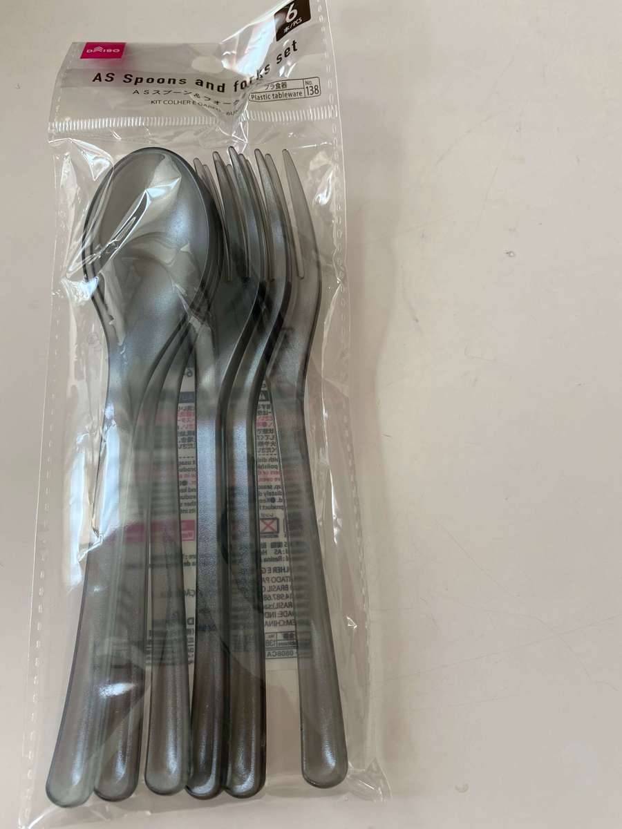 このクリアなブラックカラーがおしゃれ!今まで、こんな可愛いカトラリーセットは見たことなかったです。これでお値段110円(税込)!